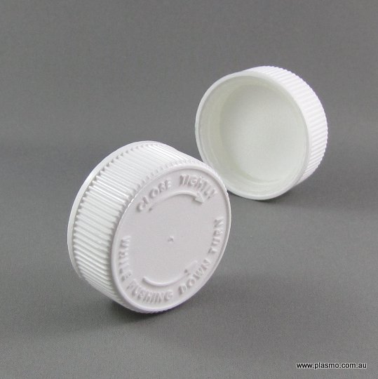 38/400 Child Resistant White Cap (VIP) – 05-38400C020-10